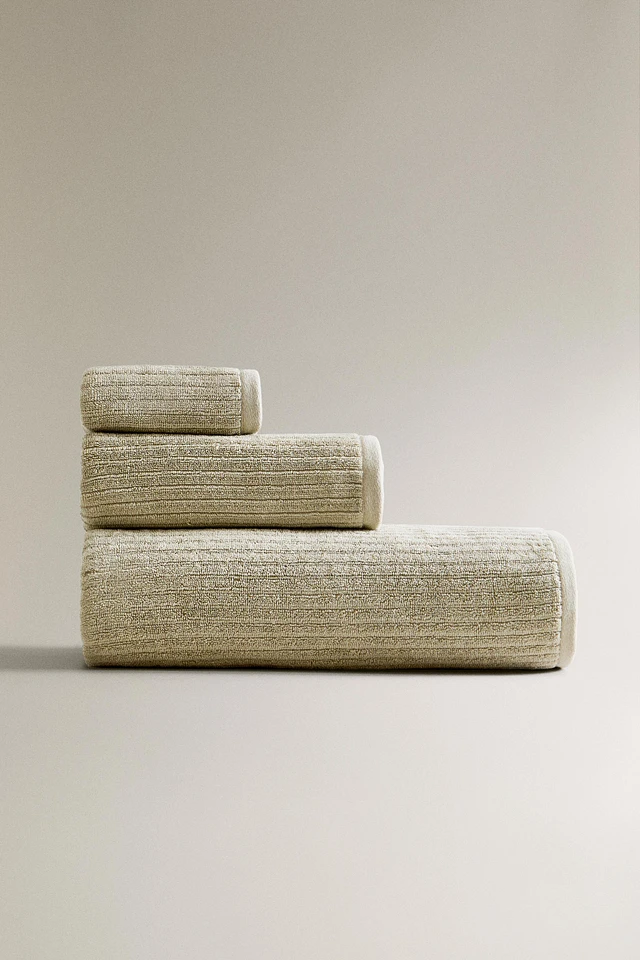 TEXTURED BATH TOWEL WITH TOPSTITCHING