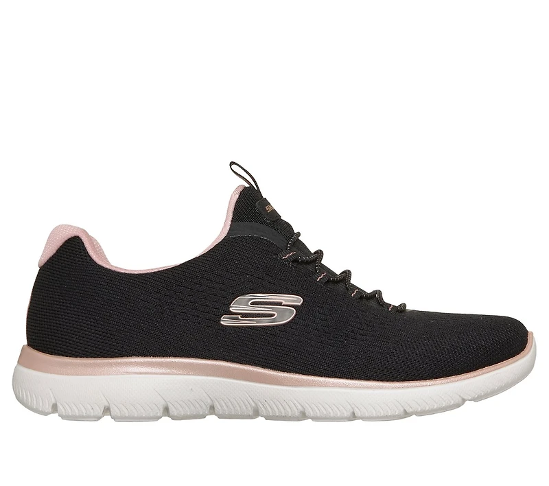 Happier feet are just a step away with Skechers Summits - Brilliant Glow. This vegan active design features an engineered mesh upper with fixed stretch laces and a Skechers Memory Foam™ cushioned comfort insole.