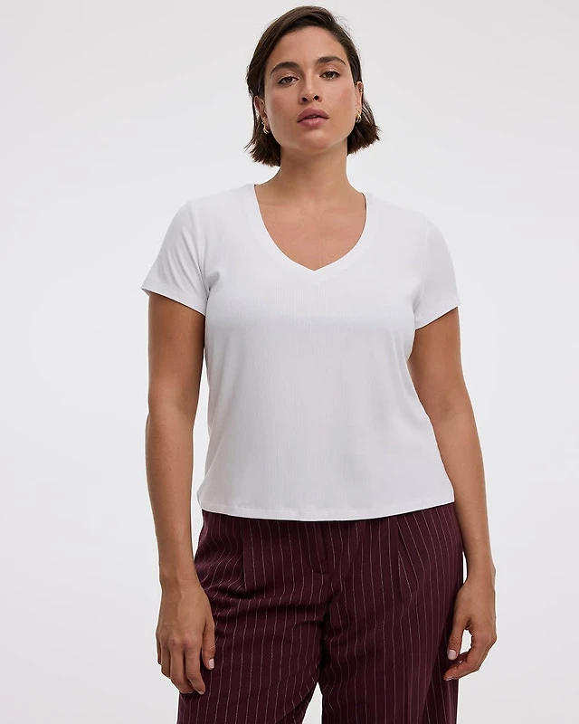T-shirt côtelé à col en V