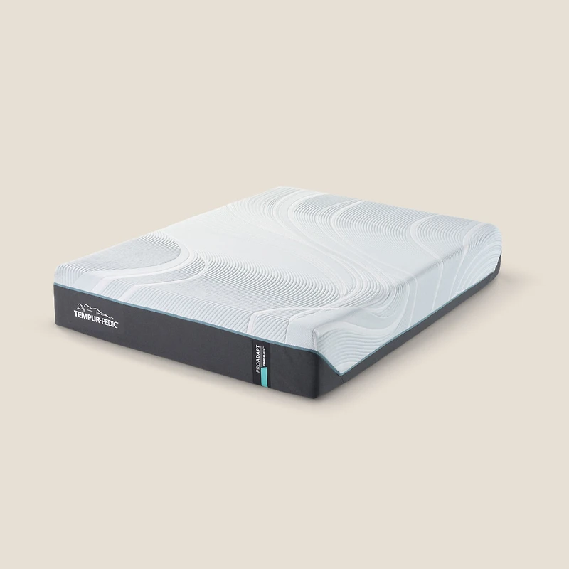 Experience a new level of cooling comfort and support for an exceptional night’s sleep. The TEMPUR ProAdapt™ Teal medium-firm mattress expertly blends TEMPUR® Material with Advanced Relief® technology to offer outstanding motion isolation and up to 20% enhanced pressure relief, while keeping you up to 3 degrees cooler than the Adapt series. Its specially engineered ventilation enhances airflow, and the removable cool-to-the-touch cover boosts breathability, ensuring a refreshing sleep every night. Medium-firm feel: This mattress provides a balanced medium-firm surface that delivers both comfort and support, making it ideal for nearly every type of sleeper. Adapts to your body: Ultra-conforming TEMPUR® Material adjusts precisely to your body’s temperature, weight, and shape for unmatched personalized support. Enhanced breathability: The specially ventilated TEMPUR® Material increases airflow for improved cooling while offering excellent support, pressure relief, and motion absorption. Effective cooling: It stays up to 3 degrees cooler than Tempur-Pedic Adapt series models. The patented cool-to-the-touch removable cover is machine-washable and features a 360-degree zipper for effortless removal, ensuring you remain cool throughout the night. Superior pressure relief: With up to 20% more pressure relief than the Tempur-Pedic Adapt series, the lightweight, breathable High-Stretch Performance Panel is designed to maximize the mattress's pressure-relieving capabilities. Eco-conscious manufacturing: Tempur-Pedic® is dedicated to sustainability— the TEMPUR Adapt® top panel now incorporates 20% recycled content, making it an environmentally responsible choice.
