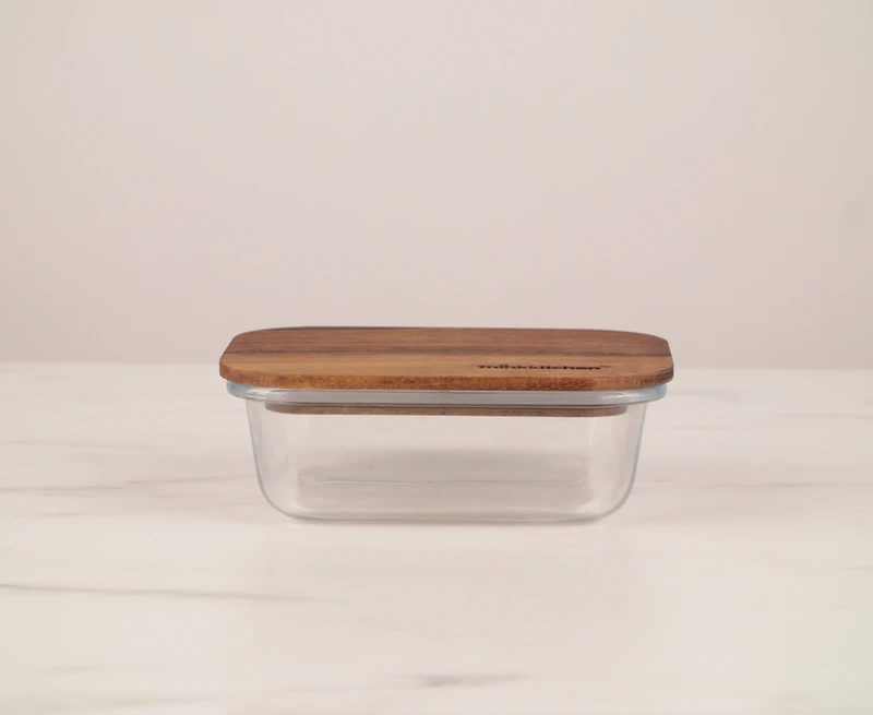 - Made of 90% Borosilicate glass, 10% Acacia wood