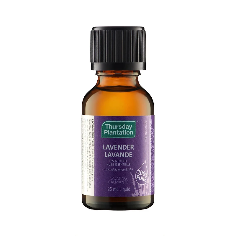Thursday Plantation Lavender Oil is a 100% pure, therapeutic-grade essential oil, clinically shown to help calm, soothe, and relax both body and mind. Certified with a Natural Product Number (NPN), it’s officially recognized by Health Canada for its therapeutic benefits and meets strict standards for quality and safety. Sourced from premium lavender and rigorously tested for purity, this essential oil contains no synthetic additives or fillers, offering a natural and effective choice for relaxation and overall well-being.Recommended use:Used in Aromatherapy as a nervine/calmative.Used in Aromatherapy to help relieve joint/muscle pain associated with sprain/strain/rheumatoid arthritis.Used in Aromatherapy to help relieve headache.Used in Aromatherapy to help relieve colds/cough.Used in Aromatherapy as a carminative/antispasmodic for symptomatic relief of digestive discomfort.
