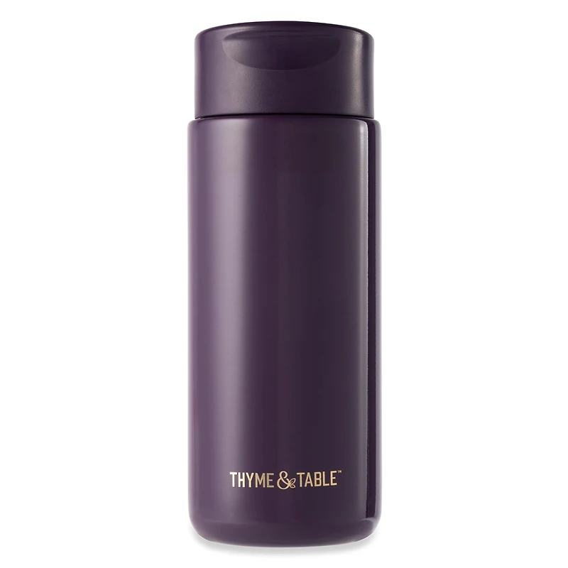 Introducing the Thyme & Table Double Wall Insulated Stainless Steel Coffee Tumbler, 22oz Travel Mug, Purple, crafted to keep your drinks at the perfect temperature. This sleek tumbler ensures your beverages stay hot for up to 8 hours or cold for up to 12 hours, making it ideal for your daily commute or any adventure. Its leak-proof lid and condensation-free design make it mess-free and easy to handle. Designed with durable stainless steel, this tumbler fits most cupholders and is perfect for enjoying your favorite hot or cold drinks on the go. Stay hydrated in style with this versatile travel mug. 22 OZ CAPACITY: Holds 22 oz, ideal for long commutes or busy mornings. KEEPS DRINKS HOT: Keeps drinks hot for 8 hours, perfect for all-day sipping. KEEPS DRINKS COLD: Maintains cold temperatures for up to 12 hours. LEAK-PROOF LID: Designed to prevent spills while you're on the move. DURABLE DESIGN: Double-wall stainless steel construction for daily use. FITS MOST CUP HOLDERS: Fits easily into most cupholders for added convenience. CONDENSATION-FREE: Exterior stays dry, ensuring a mess-free experience. Thyme & Table Double Wall Insulated Stainless Steel Coffee Tumbler, 22oz Travel Mug, Purple