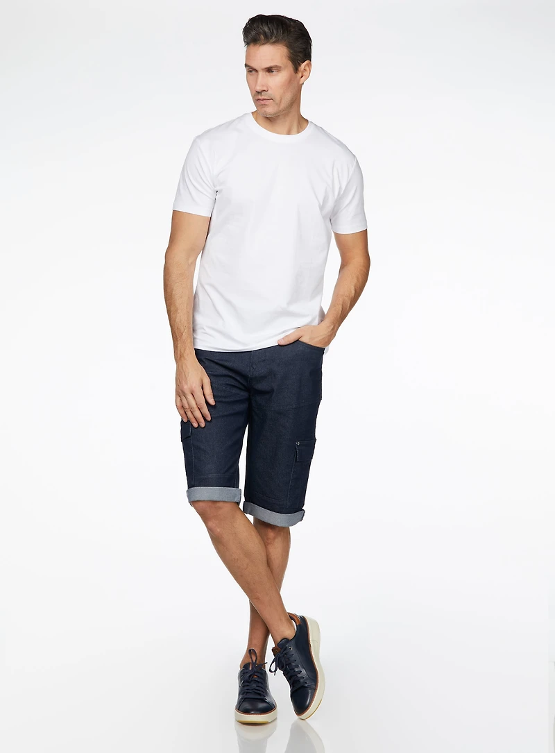 DESCRIPTION- Regular fit- Cargo pockets- Stretch knit denim- 16" inseam- Belt included