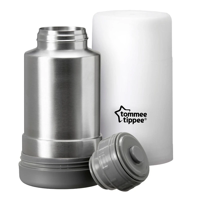 The Tommee Tippee Travel Bottle and Food Warmer easily heats baby's meal when you are on the go. Designed for use with breastmilk, formula or baby food. Portable and convenient, the thermal travel baby bottle warmer stores hot water for warming while traveling—no external warming source needed. The securely fastened lid protects from leaks and spills, and is BPA-free and phthalate-free. The food and milk warmer's compact design fits in the car or your baby’s diaper bag, so it is ready to go when you need it. Helping you Parent On