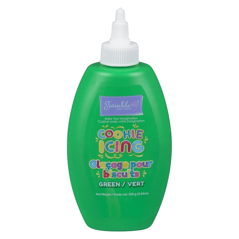 Twinkle’s Green Cookie Icing comes in a resealable bottle to ensure freshness, with an easy-to-use nozzle, write messages and draw unique designs on your baked goods. Make the most out of your personalized baked treats by pairing Twinkle Cookie Icing with other Twinkle baker décor products. Other cookie icing colours also available and are peanut free, nut free and gluten free.