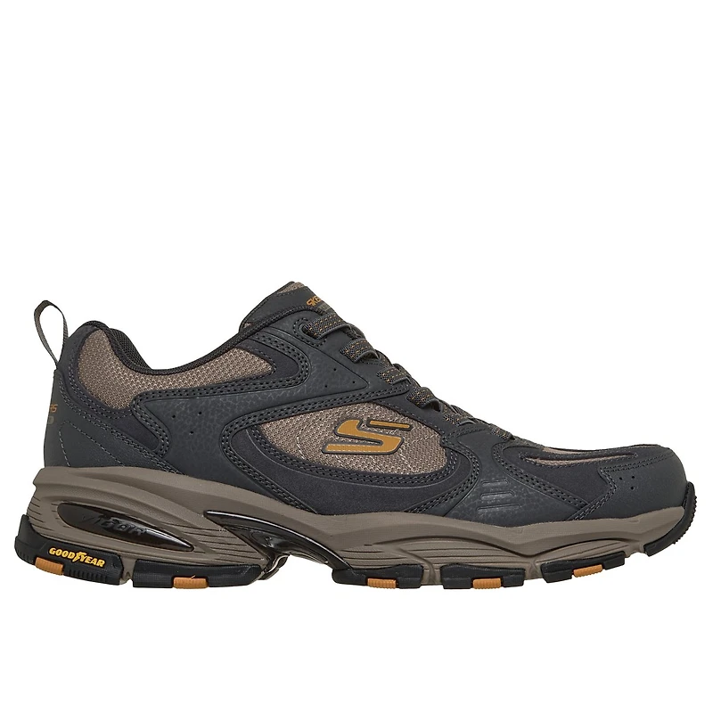 Be ready for any outdoor adventure in comfort with Skechers Vigor 3.0 - Taestro. This casual style features a leather and synthetic upper with no-tie stretch laces, an Air-Cooled Memory Foam® insole, and a Goodyear® Rubber Outsole.