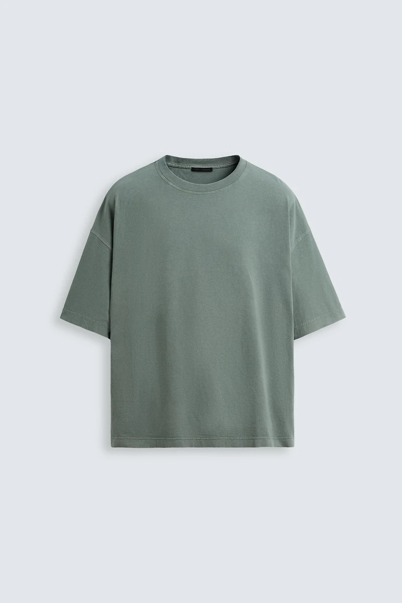 Boxy fit T-shirt. Made in lightweight cotton fabric. Round neck and short sleeves. Washed effect.