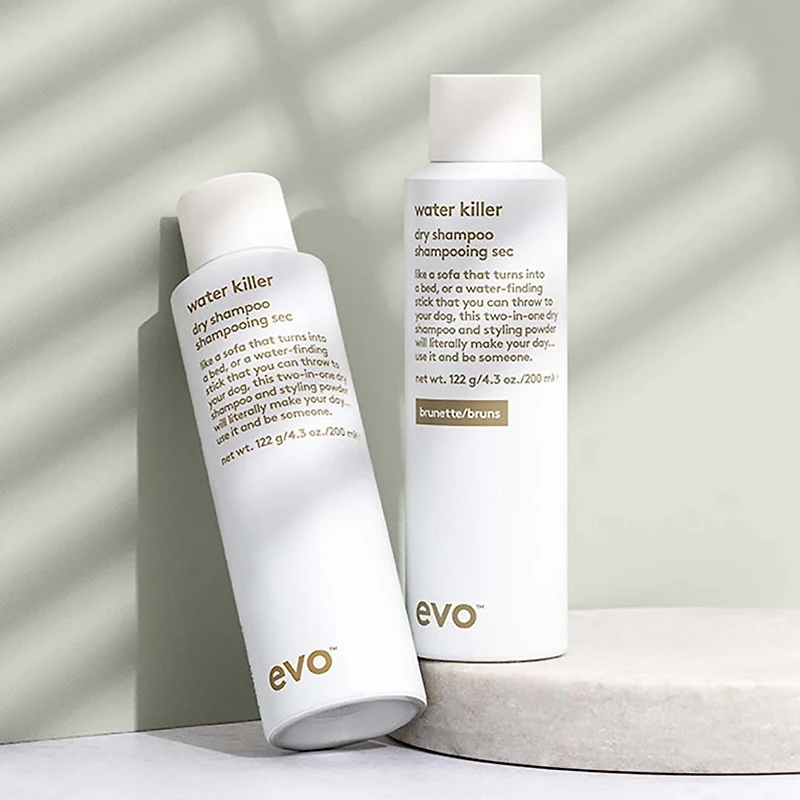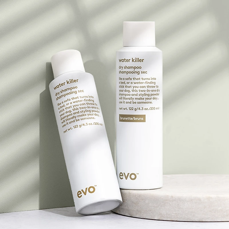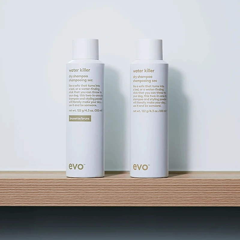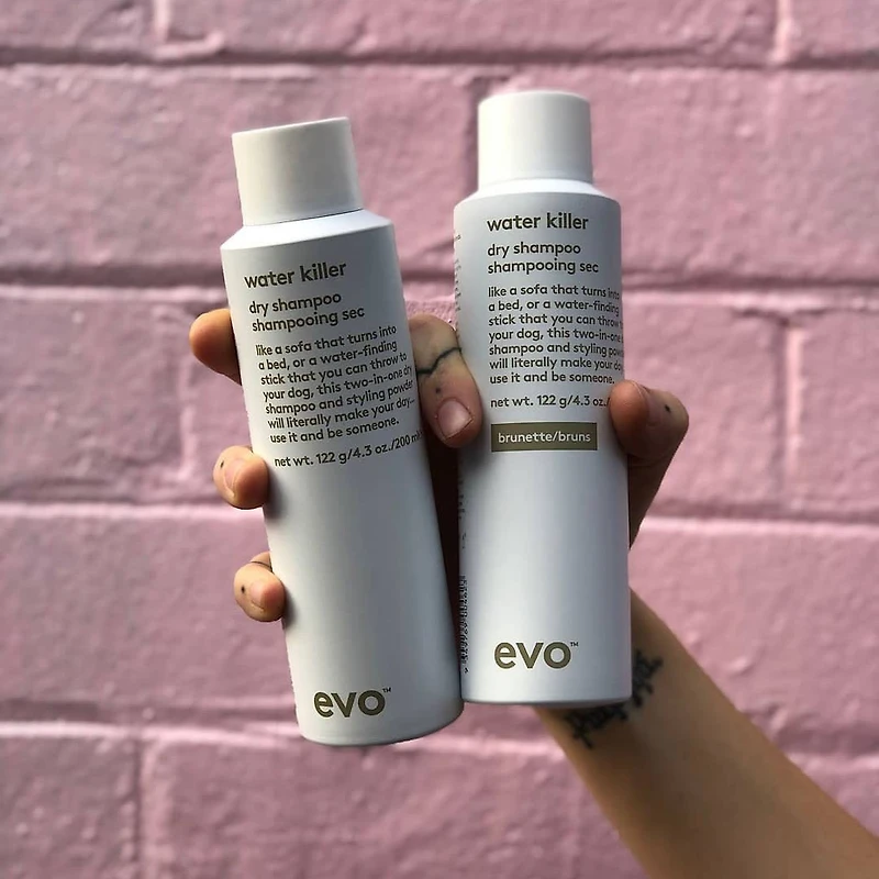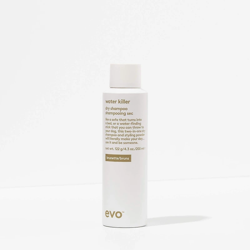 Evo Water Killer dry shampoo is specifically designed for brunettes. It absorbs excess oil and impurities while refreshing and reviving the color of brown hair. Its unique formula absorbs moisture and grease, offering instant volume and a fresh texture without leaving any white residue, ensuring a clean, polished look between washes.