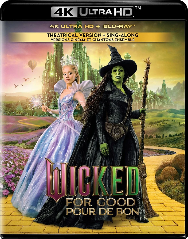 Wicked: For Good [UHD]The cinematic cultural sensation returns with the epic conclusion to the untold story of the witches of Oz. Elphaba and Glinda are now estranged, each living with the consequences of their choices. Elphaba (Cynthia Erivo), now demonized as The Wicked Witch of the West, lives in exile, continuing her fight to expose The Wizard. Meanwhile, Glinda (Ariana Grande) has become a glamorous symbol of Goodness, basking in the perks of fame and popularity. As the angry citizens of Oz rise up against the Wicked Witch, Glinda and Elphaba must reunite and truly see each other—if they are to change themselves, and all of Oz. Bring home the adventure and prepare to be changed…for good.