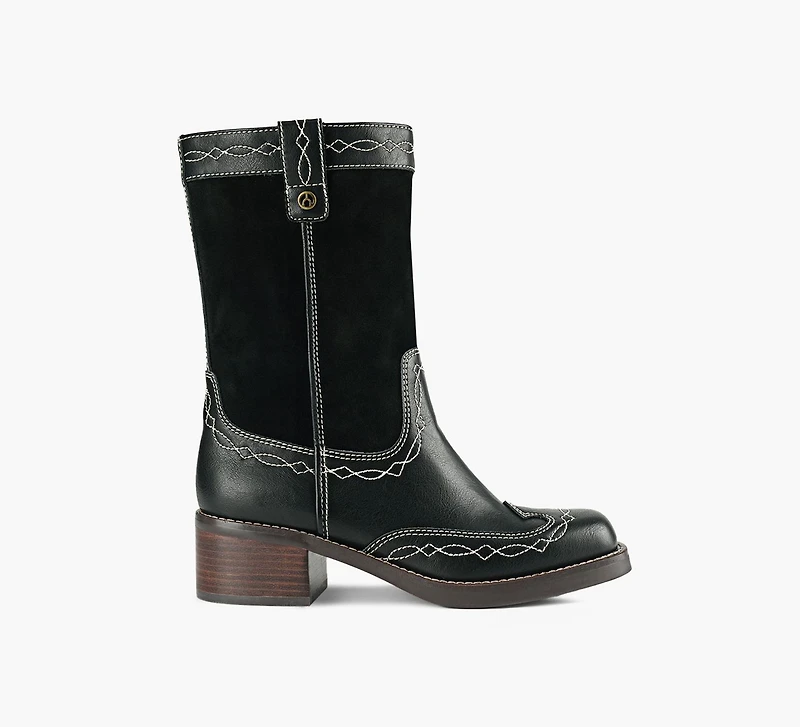 The Wilma by WISHBONE features a timeless Western silhouette enhanced with stitched detail, a stacked heel and side pull tabs for ease of wear.