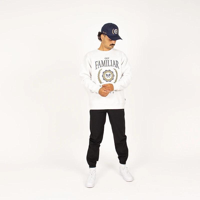 The Court Crewneck is a must-have as the colder days approach. It coordinates perfectly with our T-shirt and cap. The ash gray color makes it easy to style for your younger self.