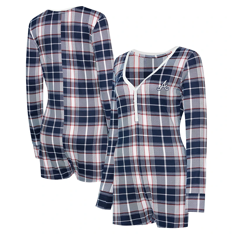Women's Concepts Sport Navy Atlanta Braves Ashford Plaid V-Neck Knit Romper