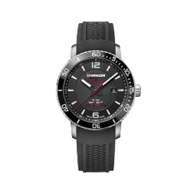 Men's Watch with black silicone strap and three-piece buckle closure. | Doucet Latendresse