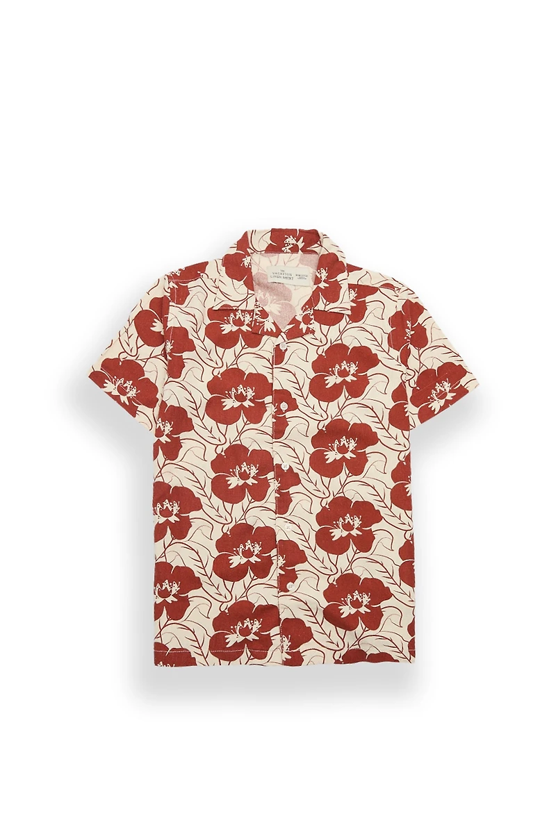 Youth Linen-Blend Floral Button-Up Shirt