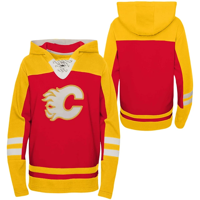 Youth Red Calgary Flames Lace-Up Pullover Hoodie