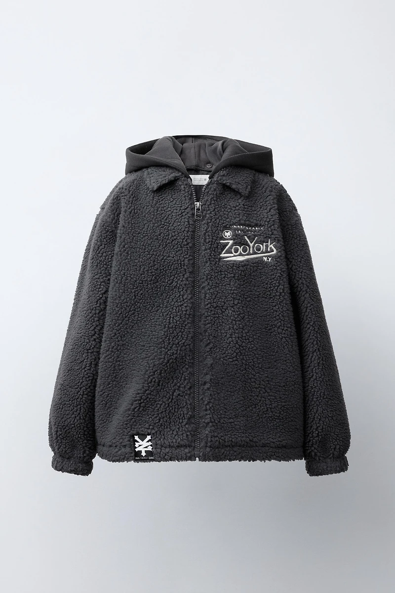 ZOO YORK® X ZARA REMOVABLE HOOD EMBROIDERED FLEECE OVERSHIRT