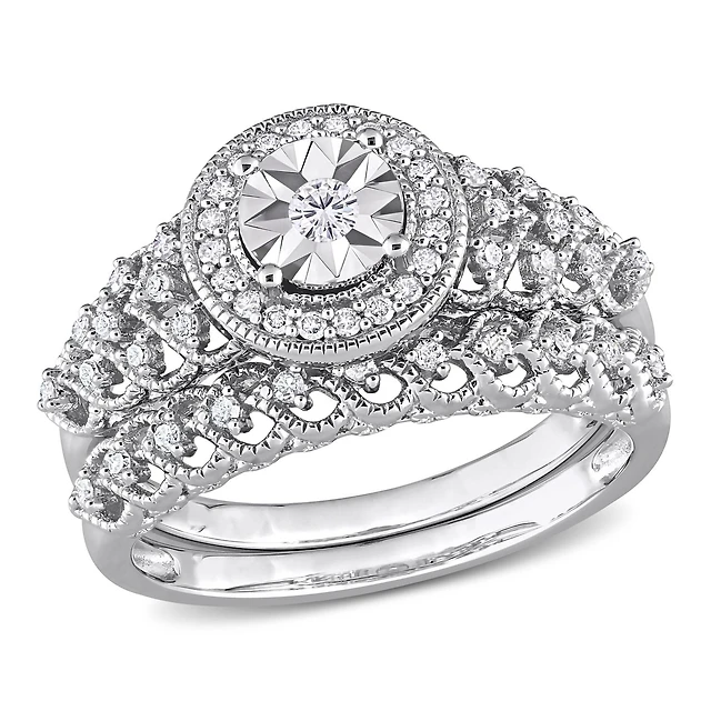 Miabella 1/10 CT TDW Round Diamond Bridal Ring Set in Sterling Silver (G-H; I2-I3)