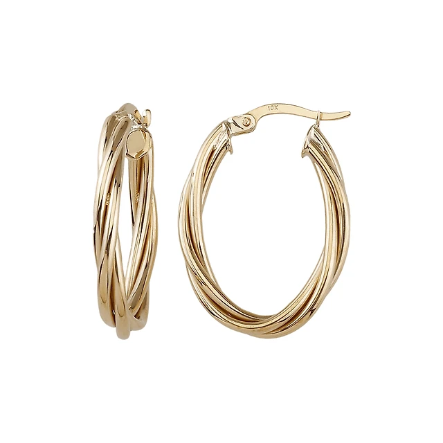 10K GOLD HOOPS 3 TONES 14X21MM
