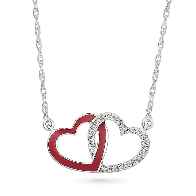 Necklace with heart pendant for woman - 10K white gold & diamonds. Color: white | Doucet Latendresse