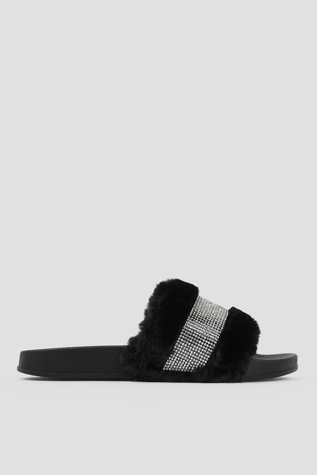 Ardene Puff Fluffy Slippers in Black | Size | Polyester | Eco-Conscious