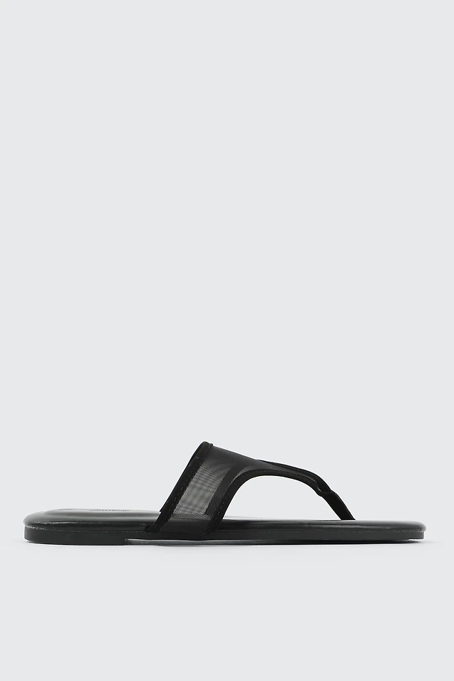 Ardene Flip-Flops with Embossed Sole Sandals in Black | Size