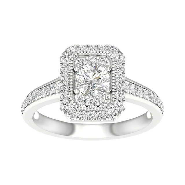 10K White Gold Double Halo Diamond Engagement Ring. Color: white | Doucet Latendresse