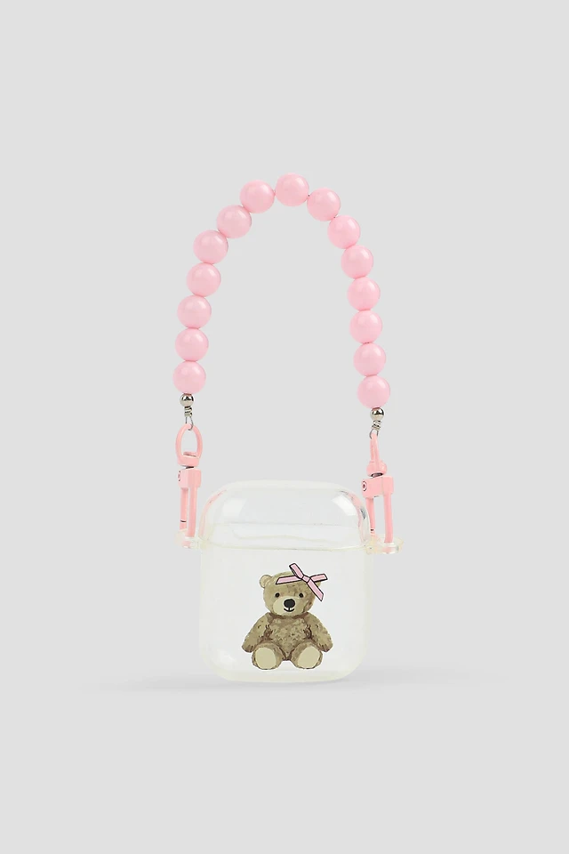 Ardene Teddy Bear AirPods case with Pearl Strap in Light Pink