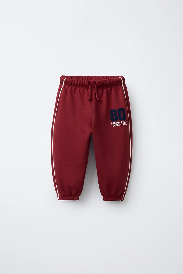 STRAIGHT PLUSH PANTS WITH RAISED LOGO