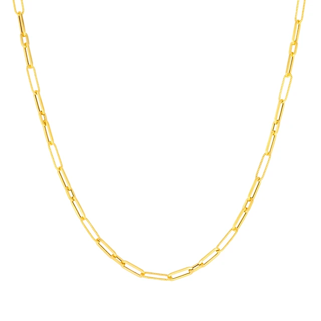 10K Gold Paperclip Chain Necklace with Polished and Textured Links. Color: yellow | Doucet Latendresse