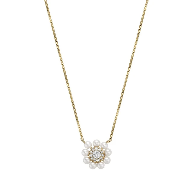 Flower pendant for woman - 10K white gold & Diamonds 3pts - 18