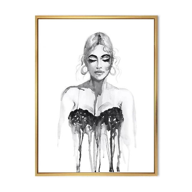 Designart Monochrome Portrait of Woman Wearing Evening Dress FLOAT FRAME WALL ART