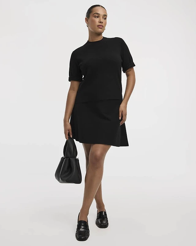 Cashmere-Blend Short-Sleeve Crew-Neck Loose Sweater