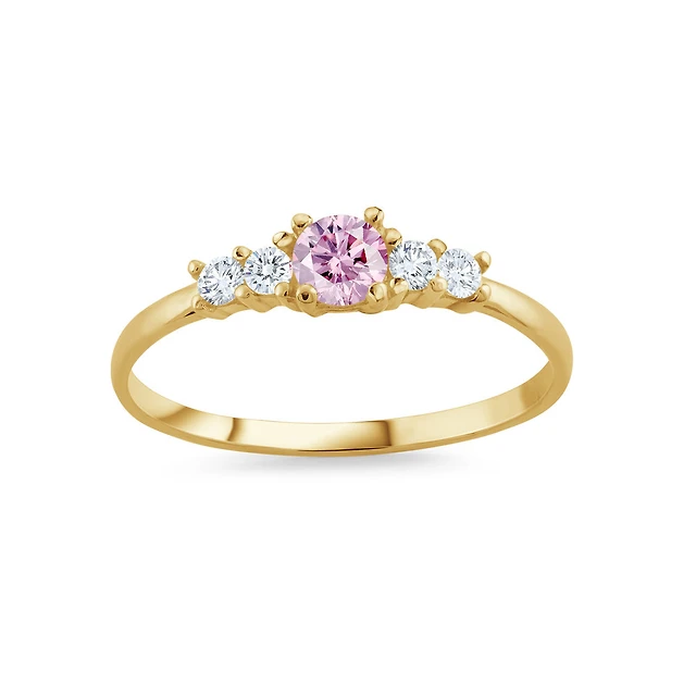 RING FOR CHILD 10K YELLOW GOLD & PINK CUBIC ZIRCONIA. Color: yellow | Doucet Latendresse