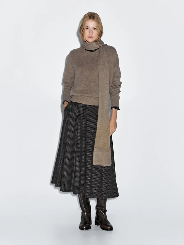 Wool blend midi skirt with yoke