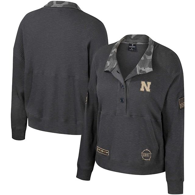 Women's Colosseum Heather Charcoal Nebraska Huskers OHT Military Appreciation Payback Henley Thermal Sweatshirt