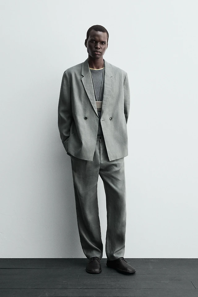 100% LINEN DOUBLE BREASTED SUIT BLAZER