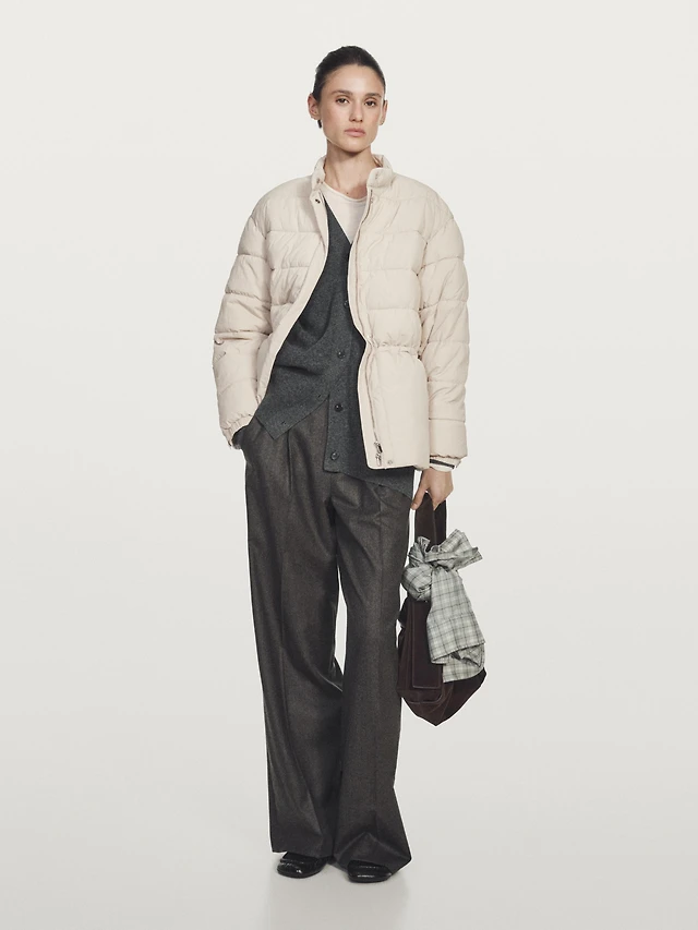WOOL BLEND BOMBER JACKET WITH RUFFLES AT NECK
