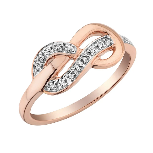 Infinty ring with diamonds 0.05 Carat T.W. Clarity:I Color:GH - In 10K Pink Gold. Color: pink | Doucet Latendresse