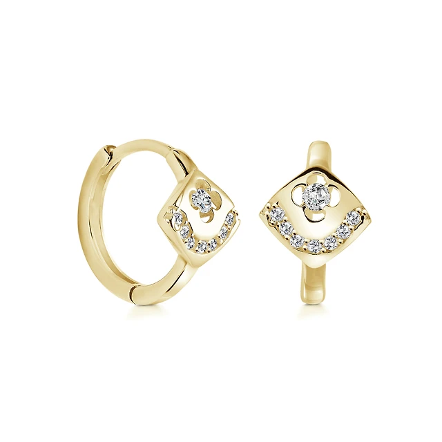 Flower earrings for children with cubic zirconia - in 10K yellow gold. Color: yellow | Doucet Latendresse