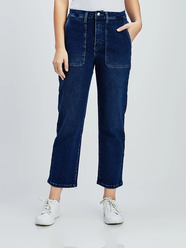 Straight semi-fitted pull-on denim capri