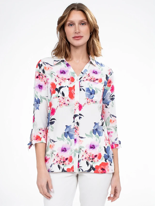 3/4-sleeve semi-fitted blouse with buttons