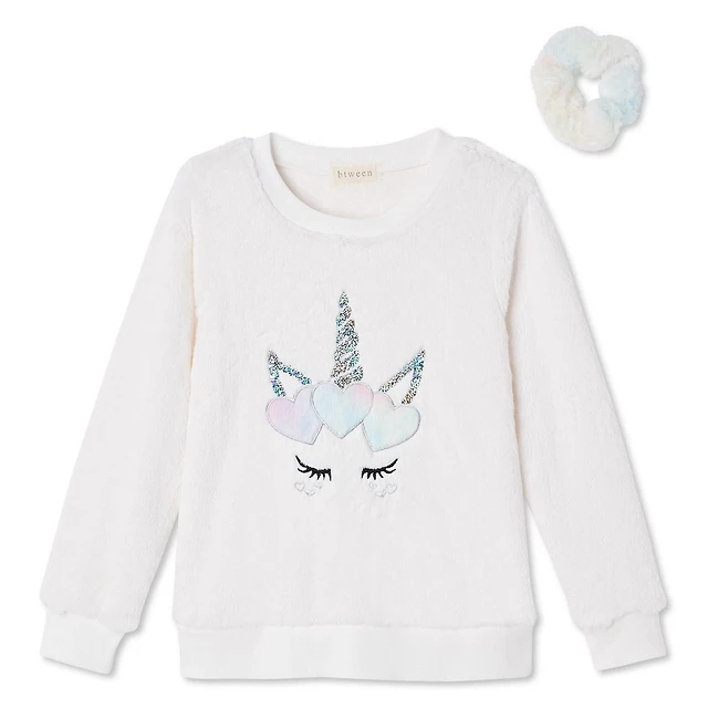 Btween Girls' Fleece Sweatshirt, Jogger, and Scrunchie 3-Piece Set