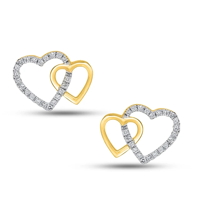 Heart earrings for woman - 10K yellow gold & Cubic zirconia. Color: yellow | Doucet Latendresse