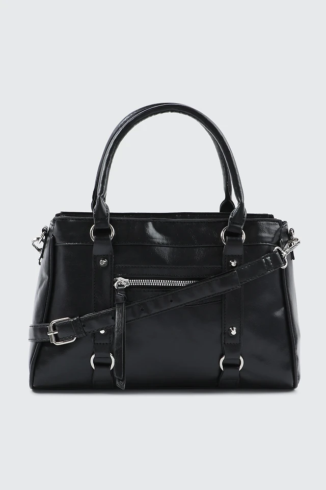 Ardene Tote Bag with Buckles in Black | Faux Leather/Polyester | Eco-Conscious