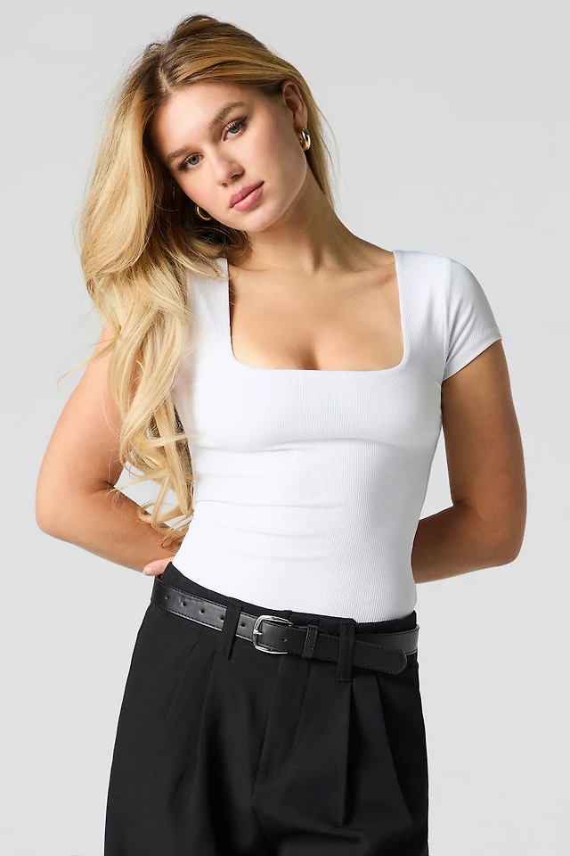 Camisole côtelé à encolure carrée et bonnets intégrés