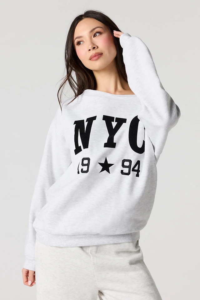 NYC Graphic Off Shoulder Fleece Sweatshirt