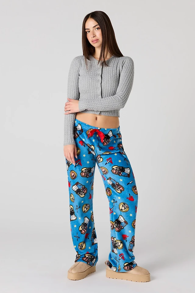 Cartoon Print Plush Pajama Pant