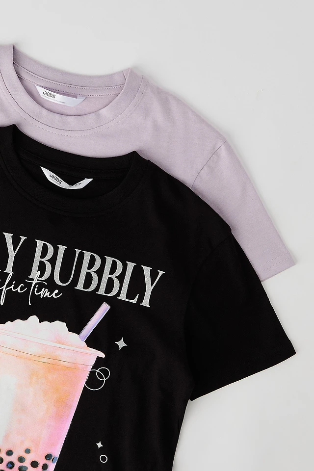 Girls Graphic & Solid T-Shirt (2 Pack)