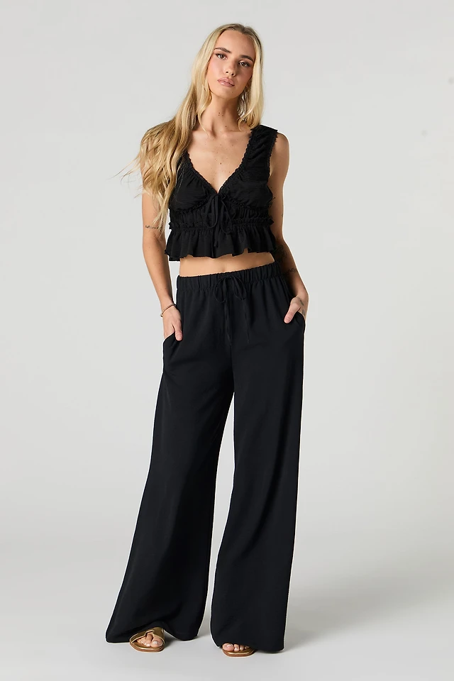 Textured Slit Wide Leg Pant